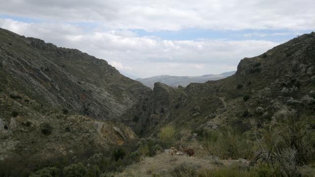 No frost and no ice in bottles, but I still slept a bit cold. Either I'm getting soft in my old age or from living too much in hotels, or else I'm not getting enough to eat and my metabolism is low. I suspect the latter. Nothing but biscuits today. Supposedly, there is a hotel in Las Juntas de Gor. If so, then I could lie about planning to stay there next trip, in case questioned by Guardia Civil or forest rangers about my plans for the night. More fuentes on the way to Baza, so 5L definitely excessive coming out of Charches. On the other hand, trying to get from La Calohorra to Baza in too days also excessive. Split up into 3 days. Maybe camp about 20km from La Calahorra, first wooded col with flat spots after entering the mountains, then half-way through the mountains. Paid 20€ for single room with bath at Hostal Case Grande. Lots of bad reviews on the internet, but the place seemed fine. Either these reviews are deliberately falsified, trolls or other hoteliers trying to hurt the competition, or some people are really spoiled. The only thing I noticed to complain about was the plastic cover on the mattress. I used to remove these because of how they make the bed hot, but now I no longer bother. My camping pad is plastic foam, and I don't mind that, so why do I care if the hotel is equally uncomfortable?