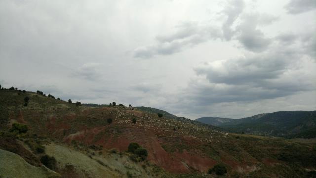 Feeling very lazy this morning. Heavy dew everywhere, sky clear. Camped a few km past Riodeva, in high pastures. Dry and clear sky, little wind.