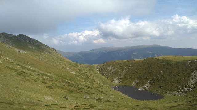Slept well. 5 lev for bus to Karlovo, leave 10:00, arrive 11:10. 1 lev for bus to Sopot. 10 lev for Sopot chair lift (lift-sopot.com for operating dates and hours) to go from 590m to 1390m elevation, thus cutting out 800m ascent. Exited lift at 12:10. Soup, meatballs and bread at Dobrila hut (1784m). Loaded up with 5L water, hiked two hours, camped near small lake at 2000m.