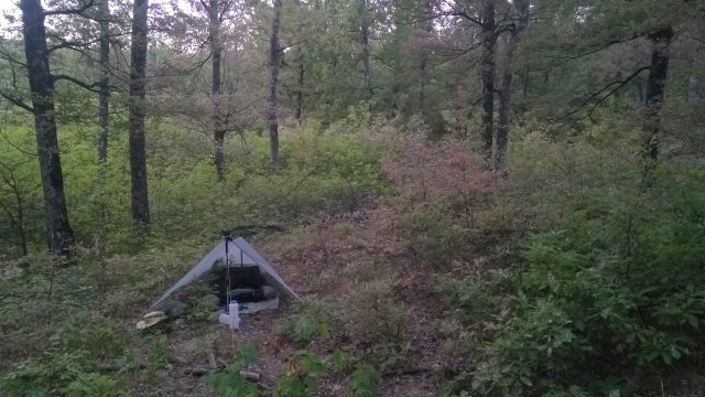 Didn't bother with breakfast at hut, since overate yesterday and sufficient food in pack to get to Kotel. At least one water source per day along ridge, but maybe not more than one, so carried three liters from hut. Felt sudden stomach pang then cold sweat after morning snack. Evidently another illness, hopefully less severe than that of last week. Felt weak all day, so had to take rest breaks every hour. Also no appetite for either food or water, so had to force myself to eat and drink. Finally managed to drag myself to Zaslon Vratnik, where there is a good spring. Filled water bottles then proceeded about 500m to first acceptable campsite. Somewhat visible from dirt road, but stealthy enough. Lay down in state of utter exhaustion, though unable to get comfortable due to aches on outside of hips.